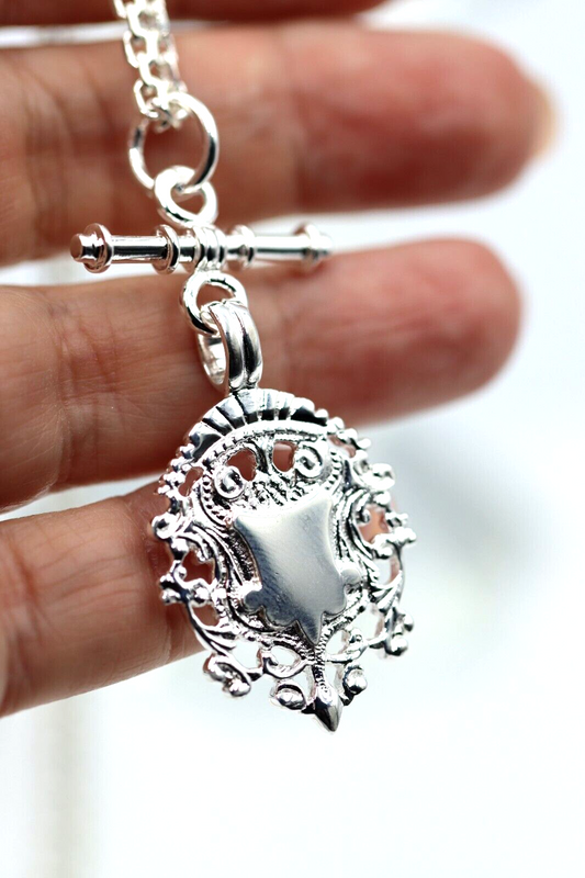 Genuine Solid Sterling Silver 925 Shield & T Bar Pendant