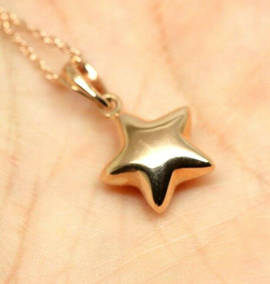 Genuine 9ct Rose Gold Thin Cable Chain Necklace 45cm + Star Pendant