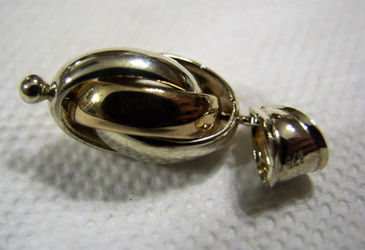 Genuine 9ct Yellow & White Gold Oval Triple Belcher Ball Pendant