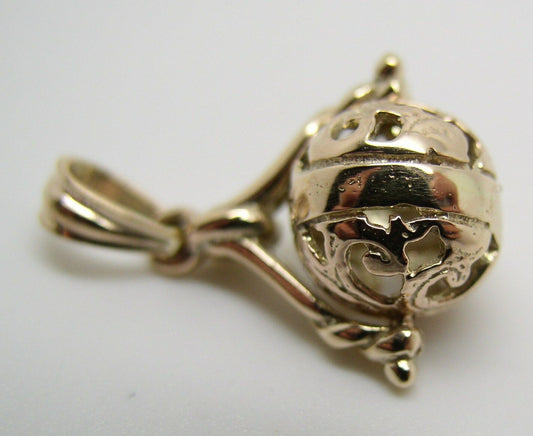 Genuine 9ct 9kt 375 Yellow, Rose Or White Gold 12mm Filigree Ball Spinner Pendant