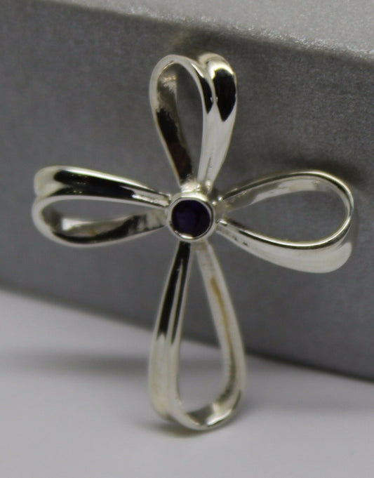 Kaedesigns,New Genuine Sterling Silver Cross Blue Sapphire Set Cross Pendant