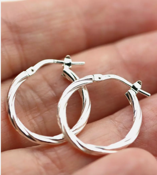 Genuine Sterling Silver 925 Twist Hoops Earrings Plain 19mm