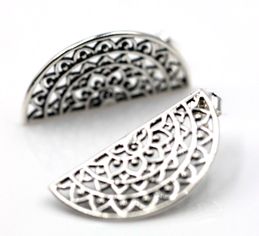 Genuine Sterling Silver 925 Large Semi Circle Filigree Stud Earrings