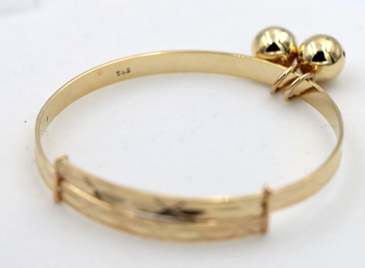 Genuine 9ct Yellow Gold 3.7mm wide Adjustable Baby Bangle with Bells