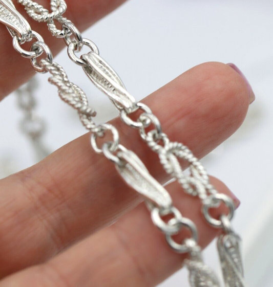 Heavy Genuine Sterling Silver Antique Fancy Links FOB Chain Necklace