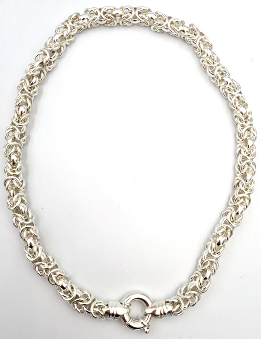 Genuine Fine Silver 999 Byzantine Heavy Necklace 47cm 128g
