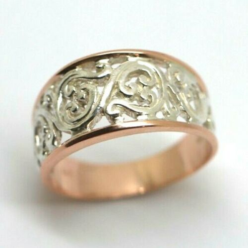 Size Q New Genuine Sterling Silver & 9ct Rose Gold Rims Filigree Swirl Ring