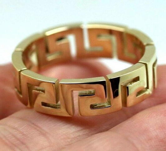 Genuine Full Solid 9ct 9kt Heavy Yellow, Rose Or White Gold Greek Key Ring Size Z + 2