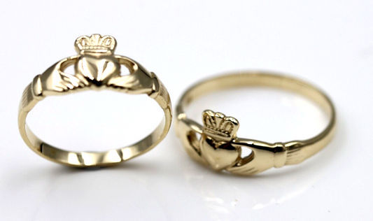 Genuine His & Hers Set Solid 9ct Yellow, Rose or White Gold Celtic Claddagh Wedding Bands Couple Rings