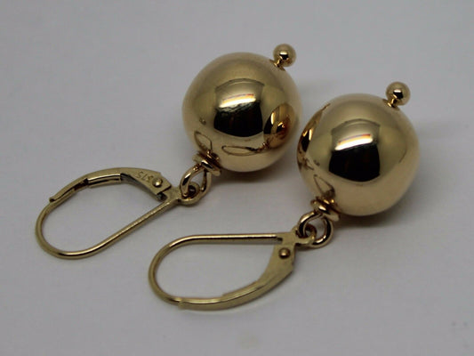 Genuine 9ct Yellow, Rose or White Gold 12mm Spinning Belcher Ball Continental Hooks Earring