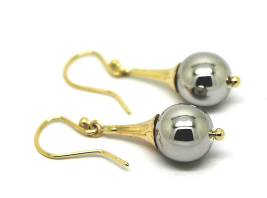 Genuine 9ct 9kt White & Yellow Gold Spinning Belcher Ball Drop Earrings