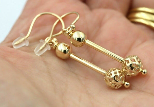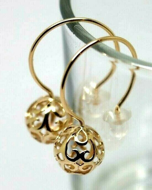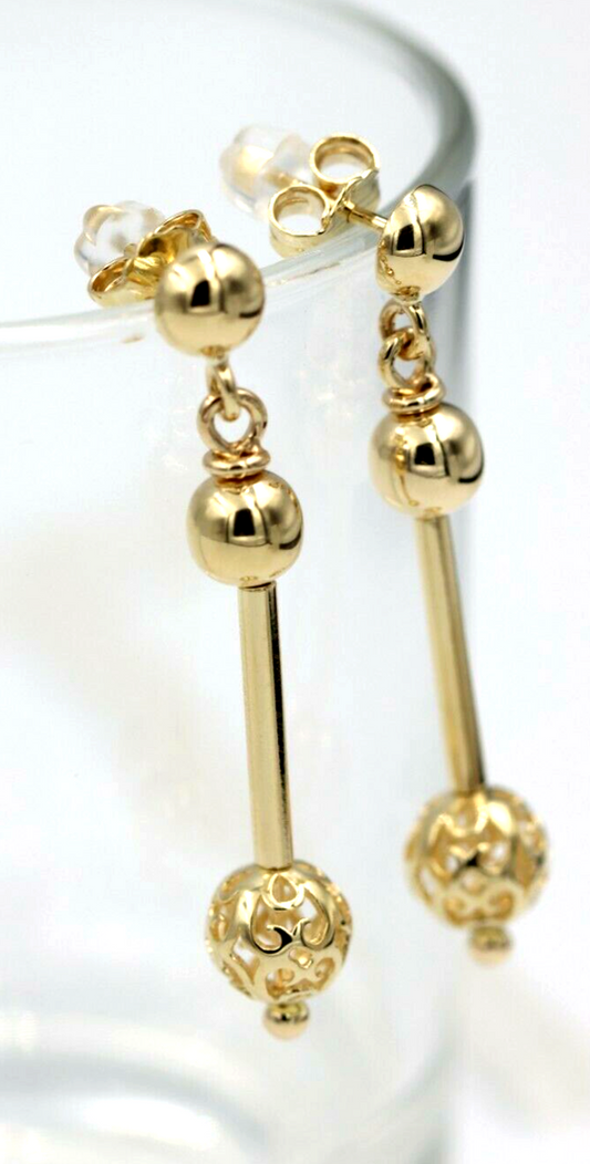 Genuine 9ct 9kt Yellow, Rose or White Gold Spinning 6mm Plain + 8mm 45mm drop Filigree Ball Drop Earrings