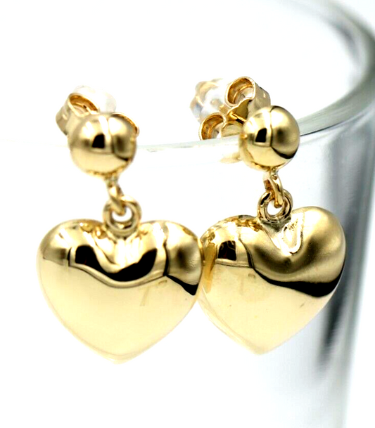 Kaedesigns 9ct Yellow, Rose or White Gold Dangle Puffed Heart Closed Hooks Earrings