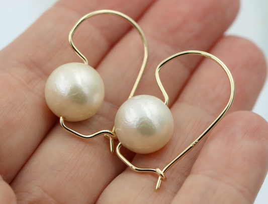 Genuine New 9ct 9k Yellow, Rose or White Gold 12mm White Freshwater Pearl Earrings