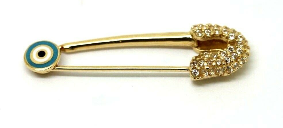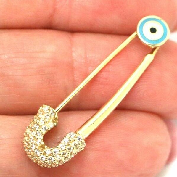 14ct Yellow Gold Baby Child's Kids Cubic Zirconia Brooch Evil Eye Mati