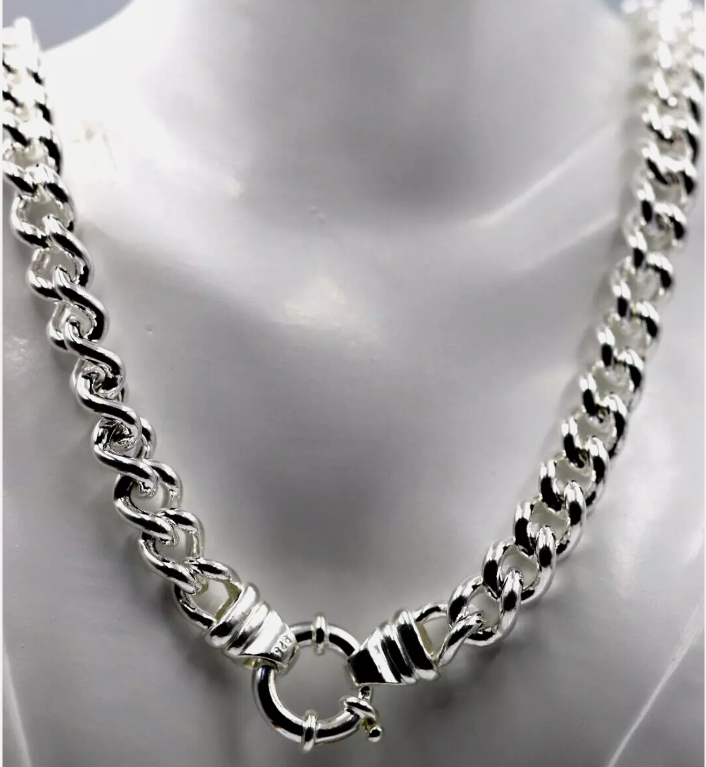 167g Solid Very Heavy Sterling Silver 925 Round Curb Bolt Ring Necklace Chain