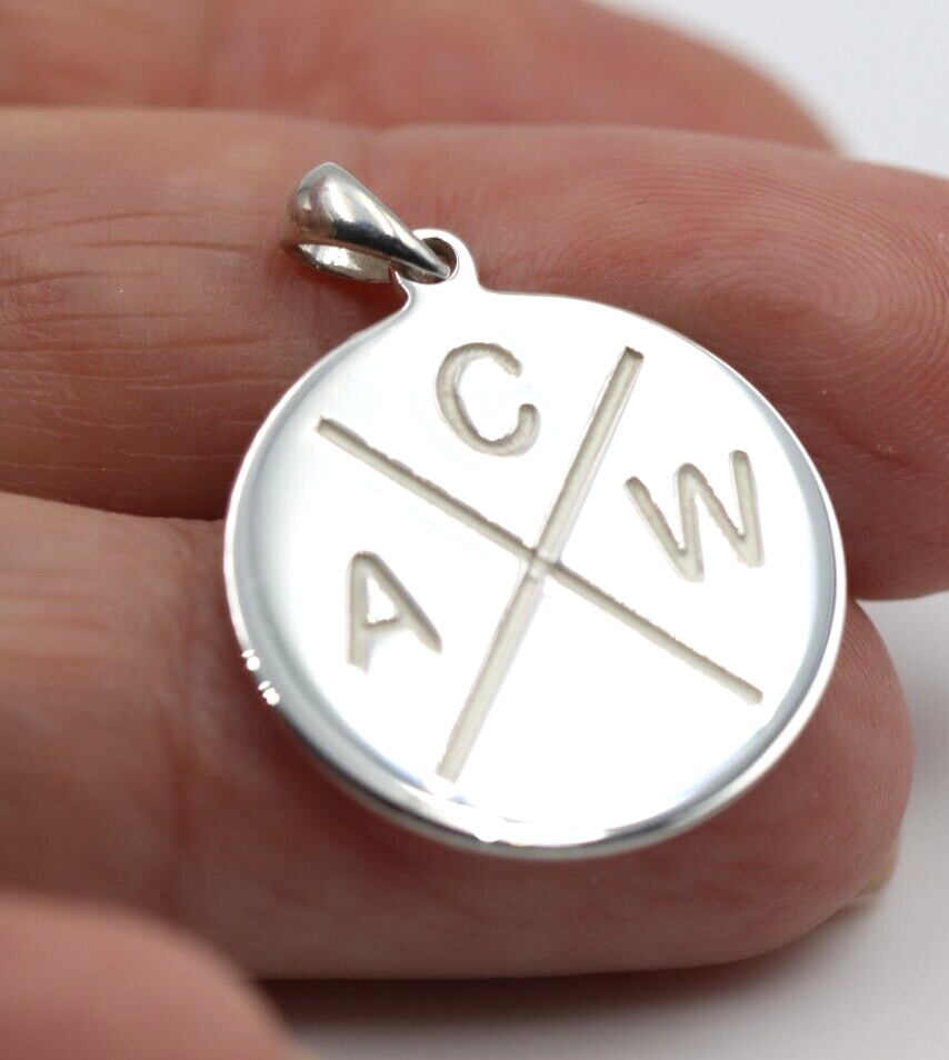 Size of pendant 20mm diameter 6mm bail (your choice of initials.)