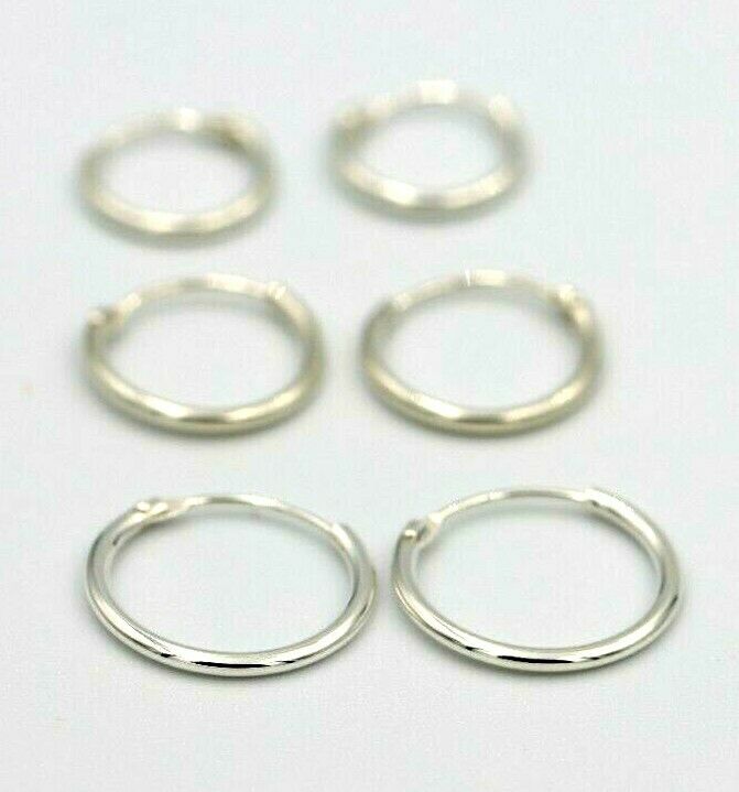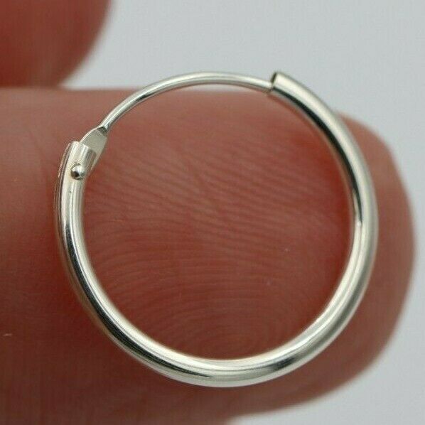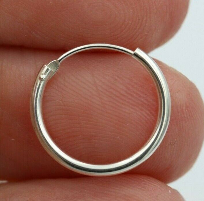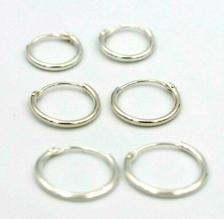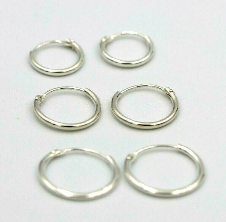 925 Sterling Silver Hoop Ring Bead Sleeper Earrings 14mm, 12mm or 10mm