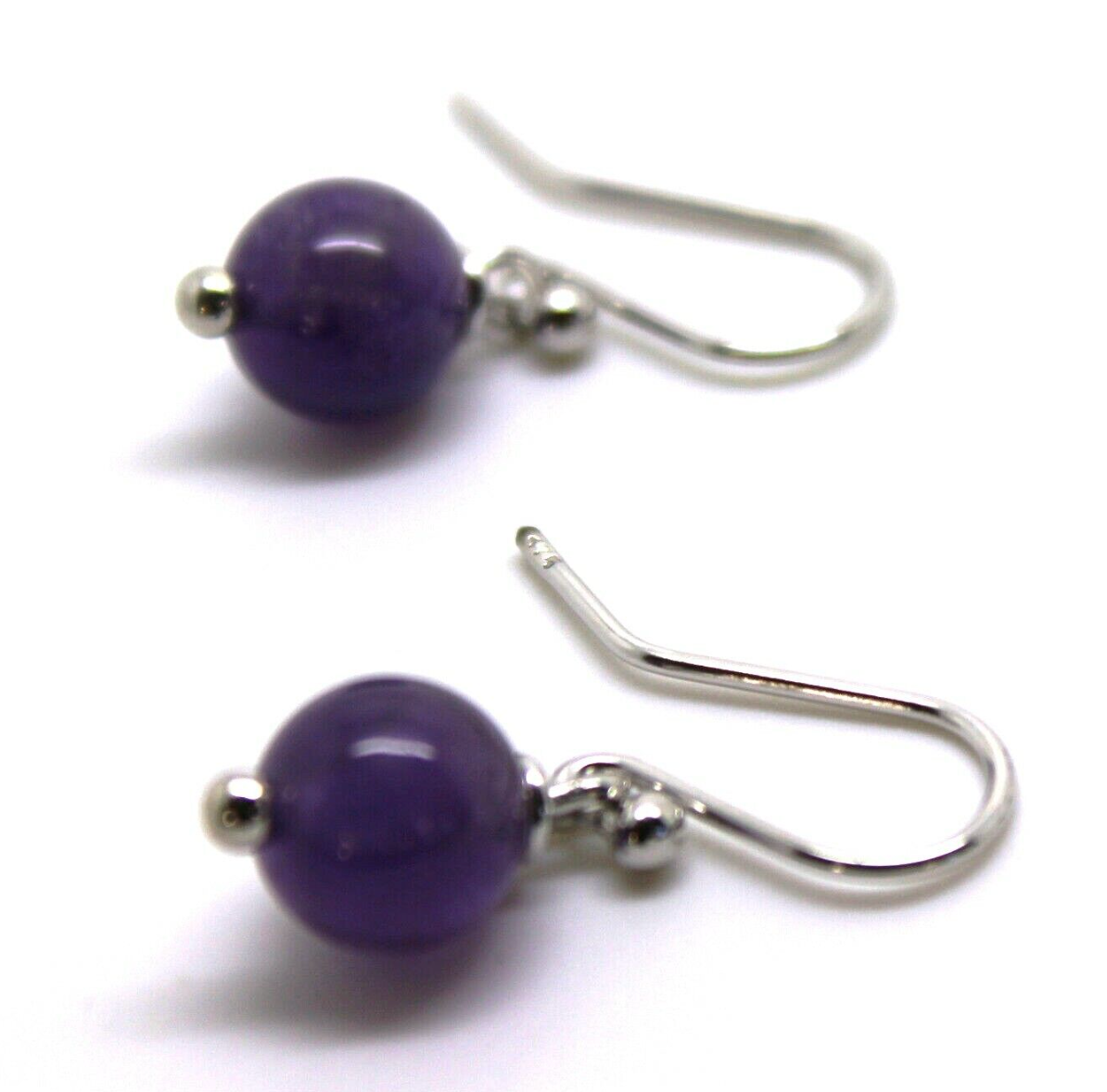 Genuine 9ct White Gold 8mm Purple Amethyst Ball Earrings