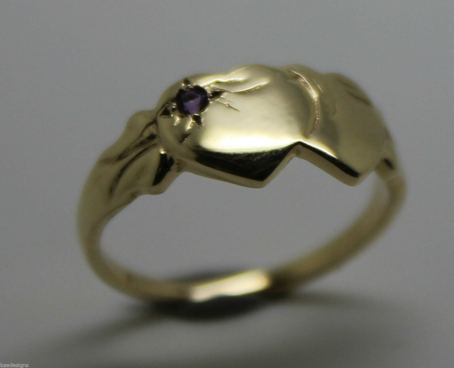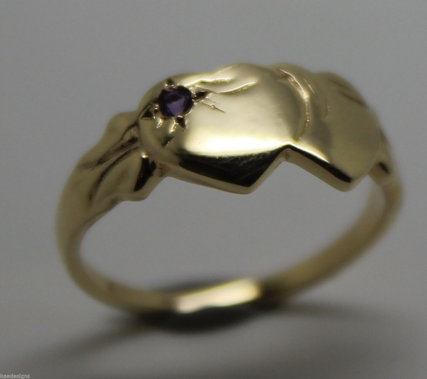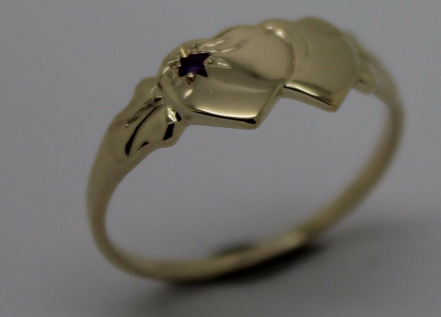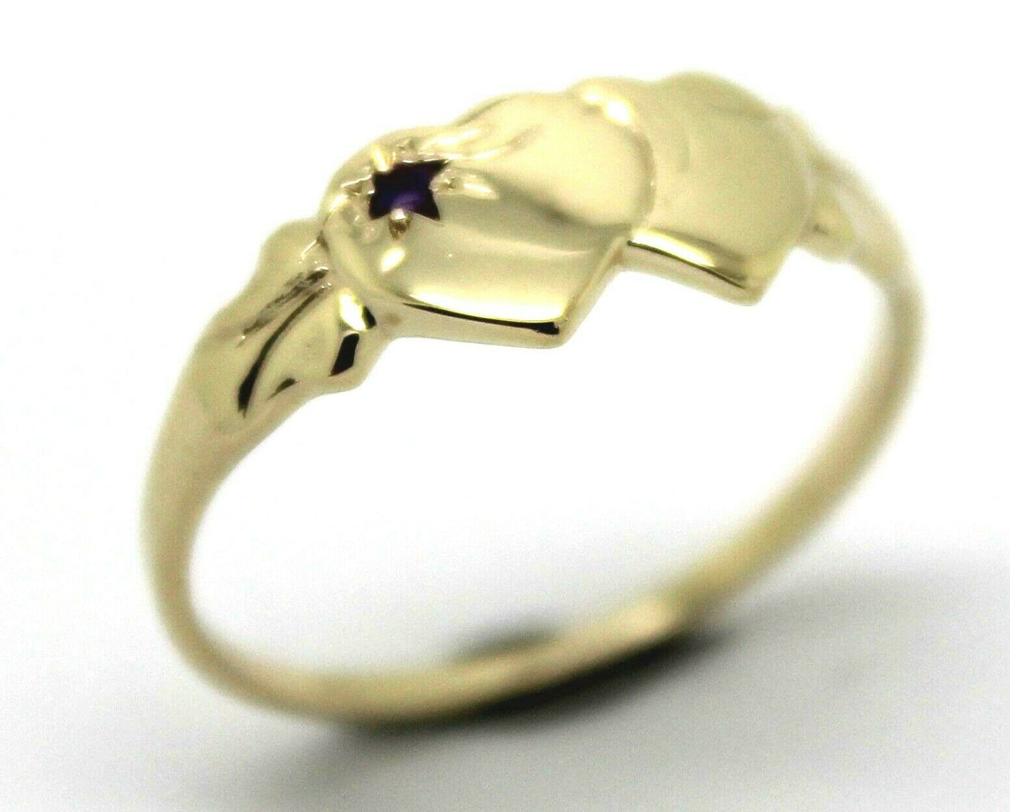 Genuine 9ct Yellow Gold 375 Amethyst (Birthstone Of February) Double Heart Signet Ring Sizes P, Q, R, S, T