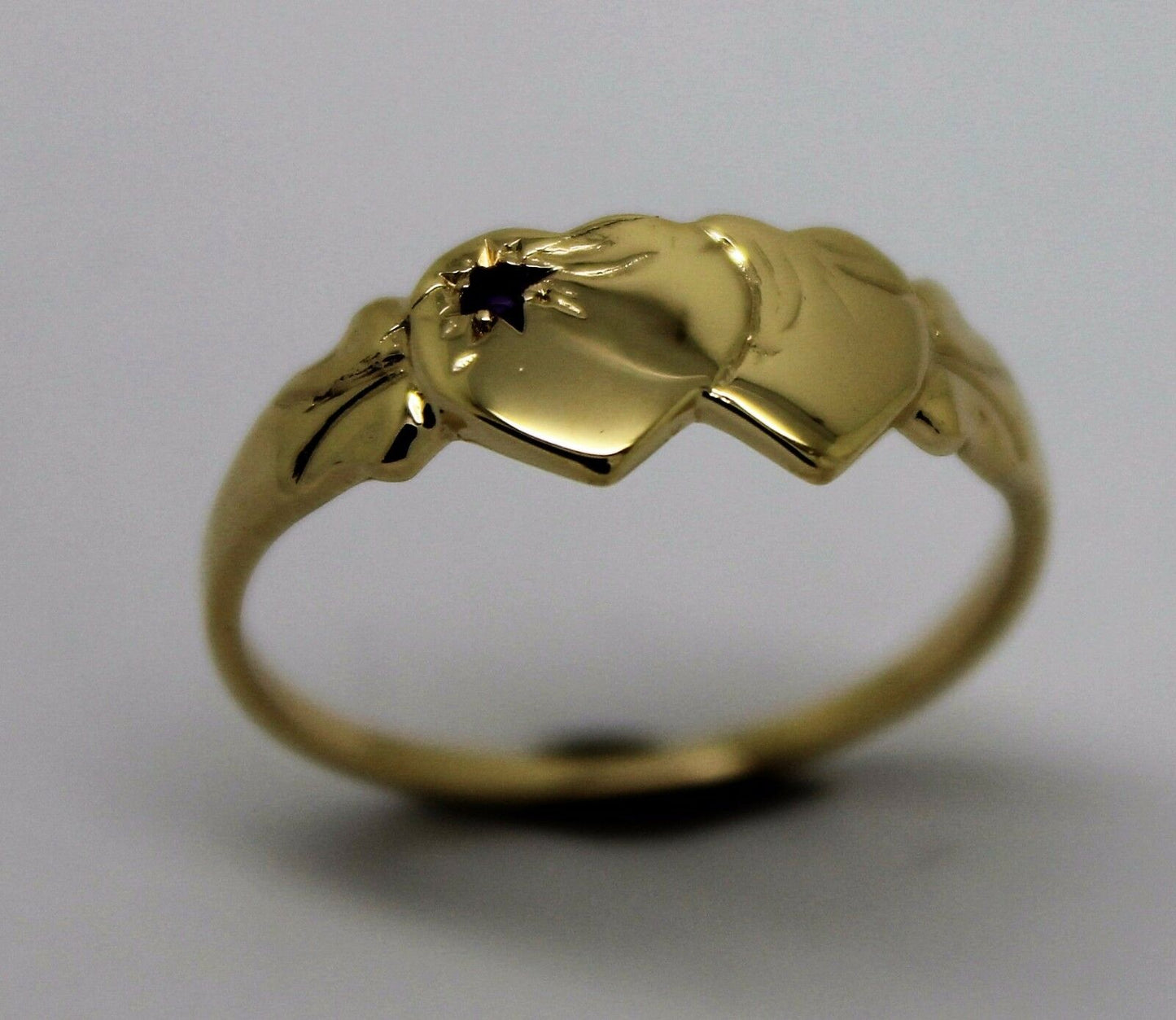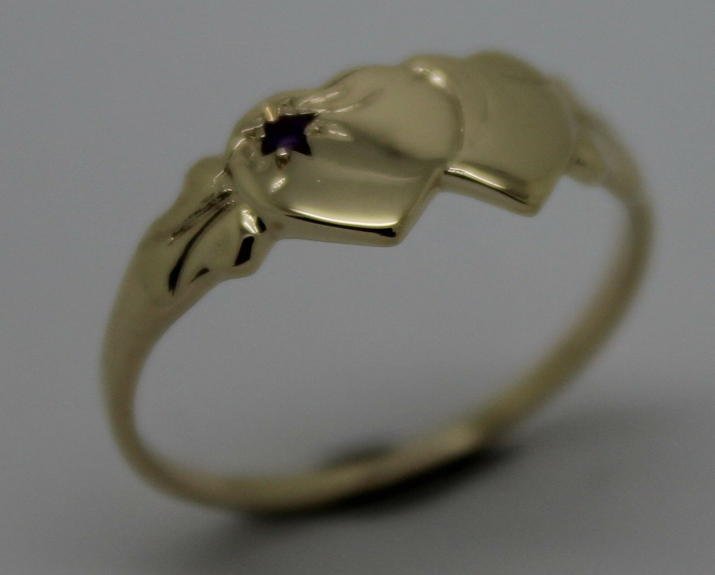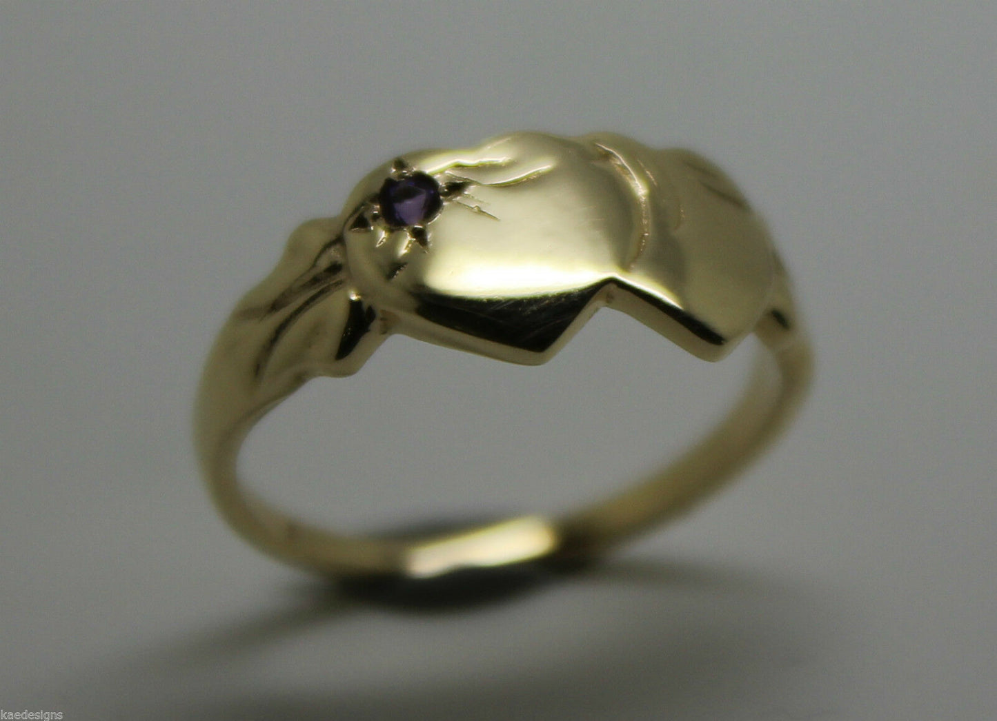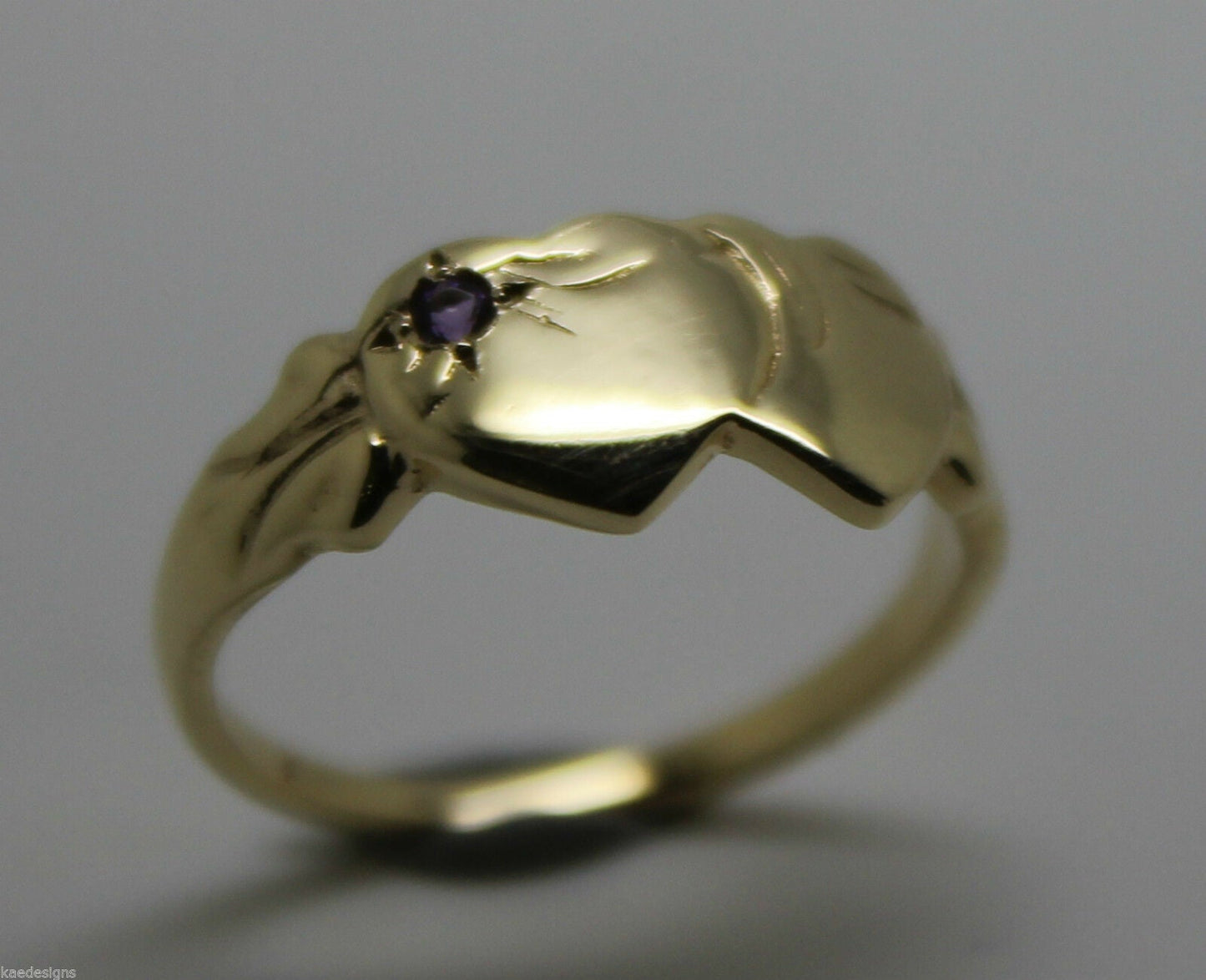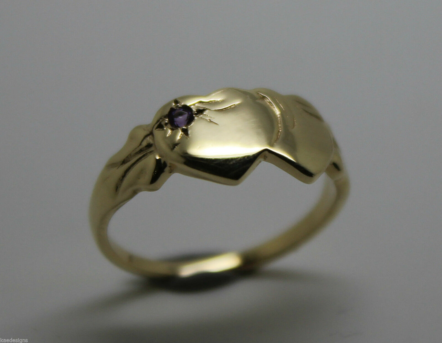 Genuine 9ct Yellow Gold 375 Amethyst (Birthstone Of February) Double Heart Signet Ring Sizes P, Q, R, S, T