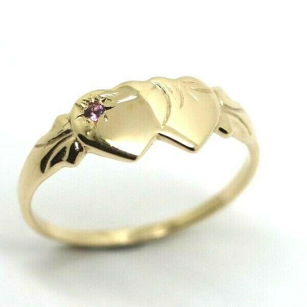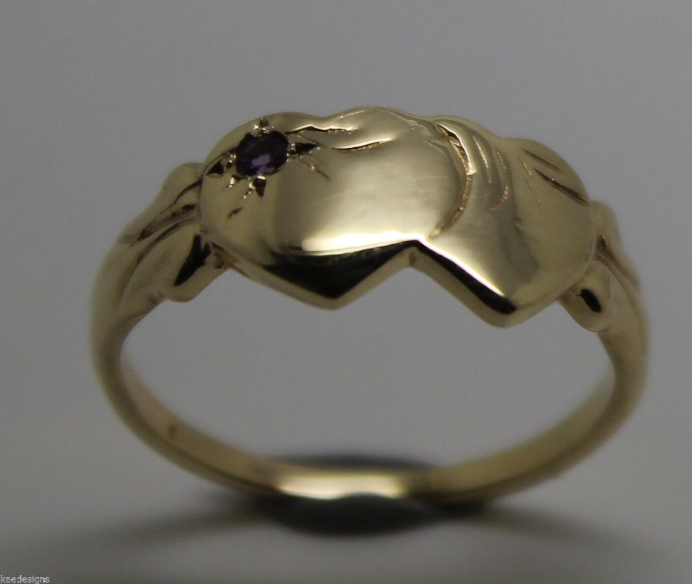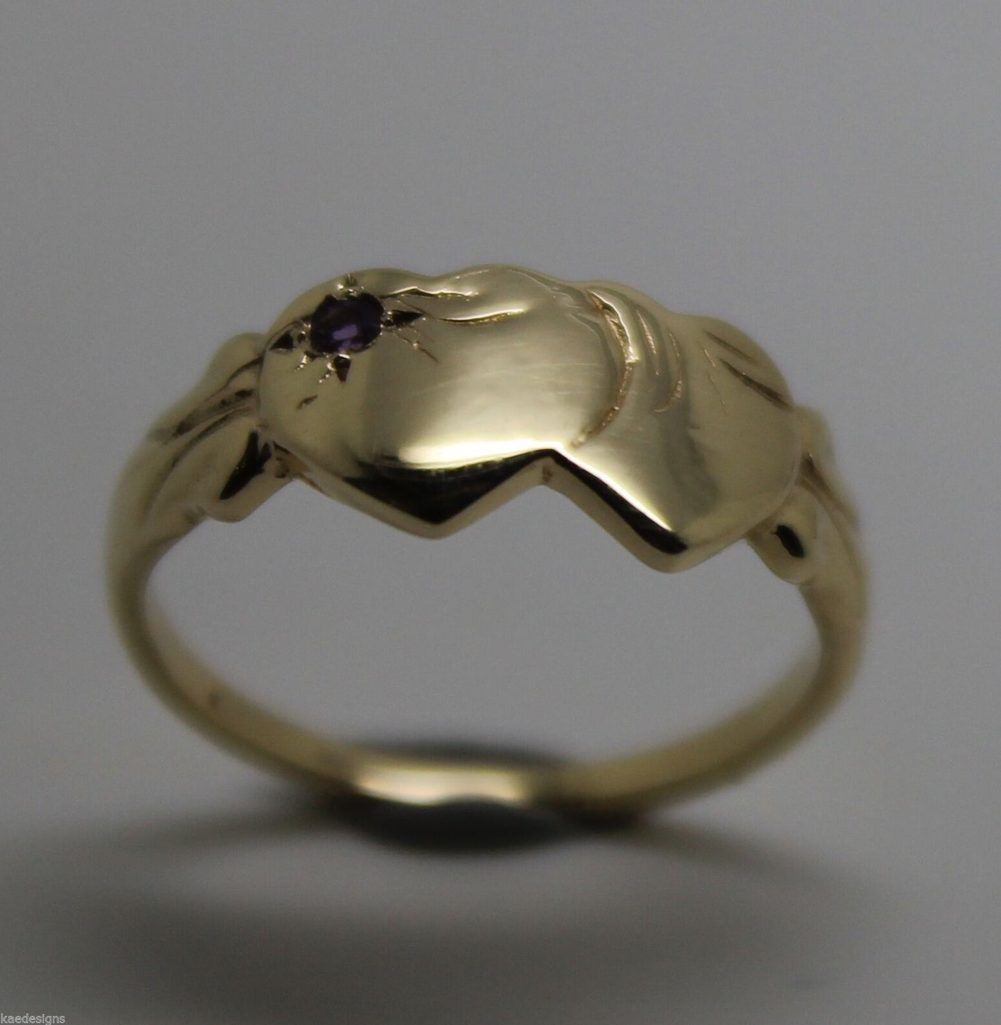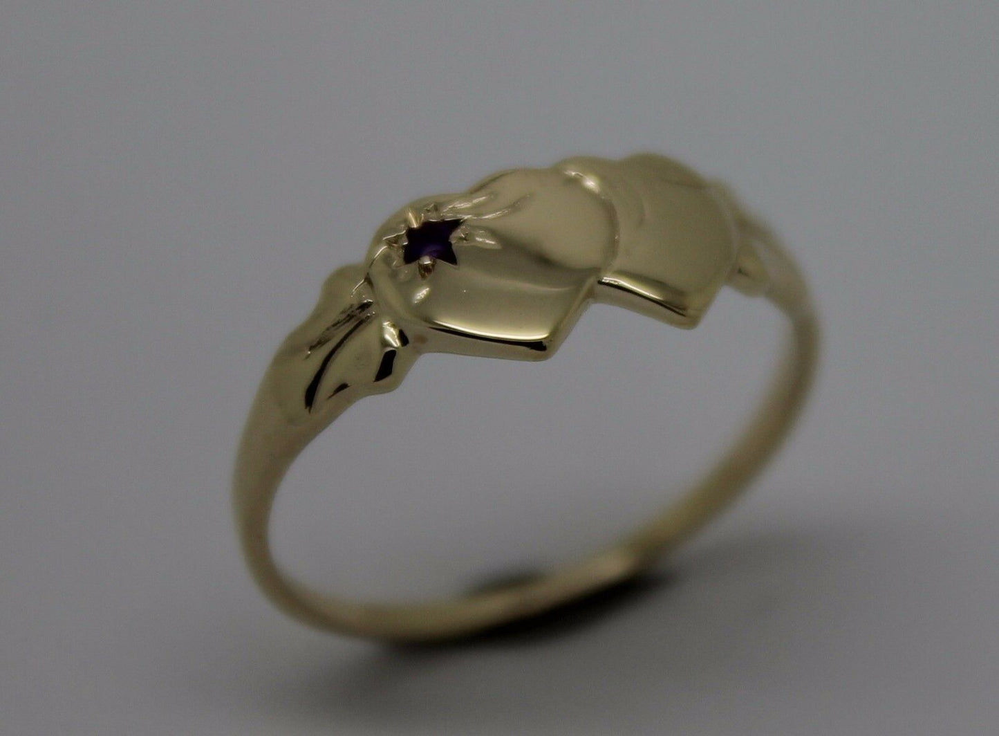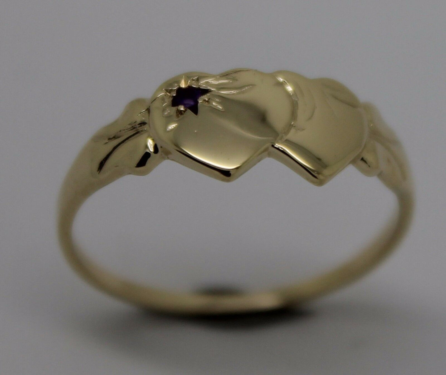 Genuine 9ct Yellow Gold 375 Amethyst (Birthstone Of February) Double Heart Signet Ring Sizes P, Q, R, S, T