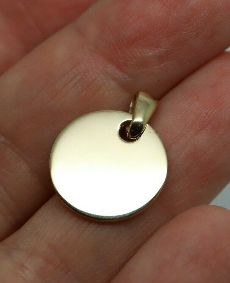 Genuine 9ct Yellow, Rose or White Gold Solid Circle Disc Pendant with Bale