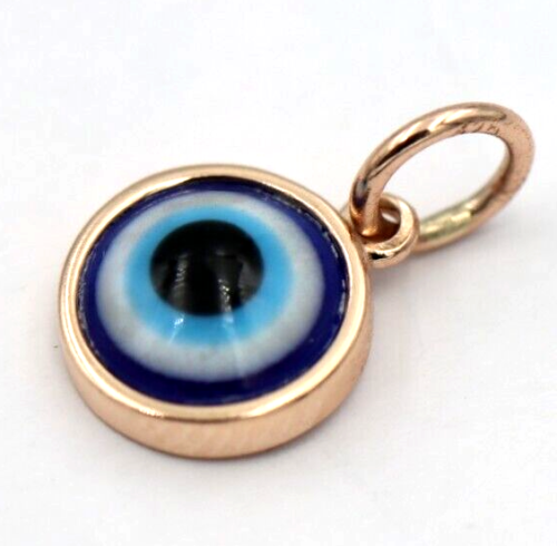Genuine 9ct Yellow, Rose or White Gold Greek 9mm Mati Nazar Lucky Evil Eye Charm or Pendant