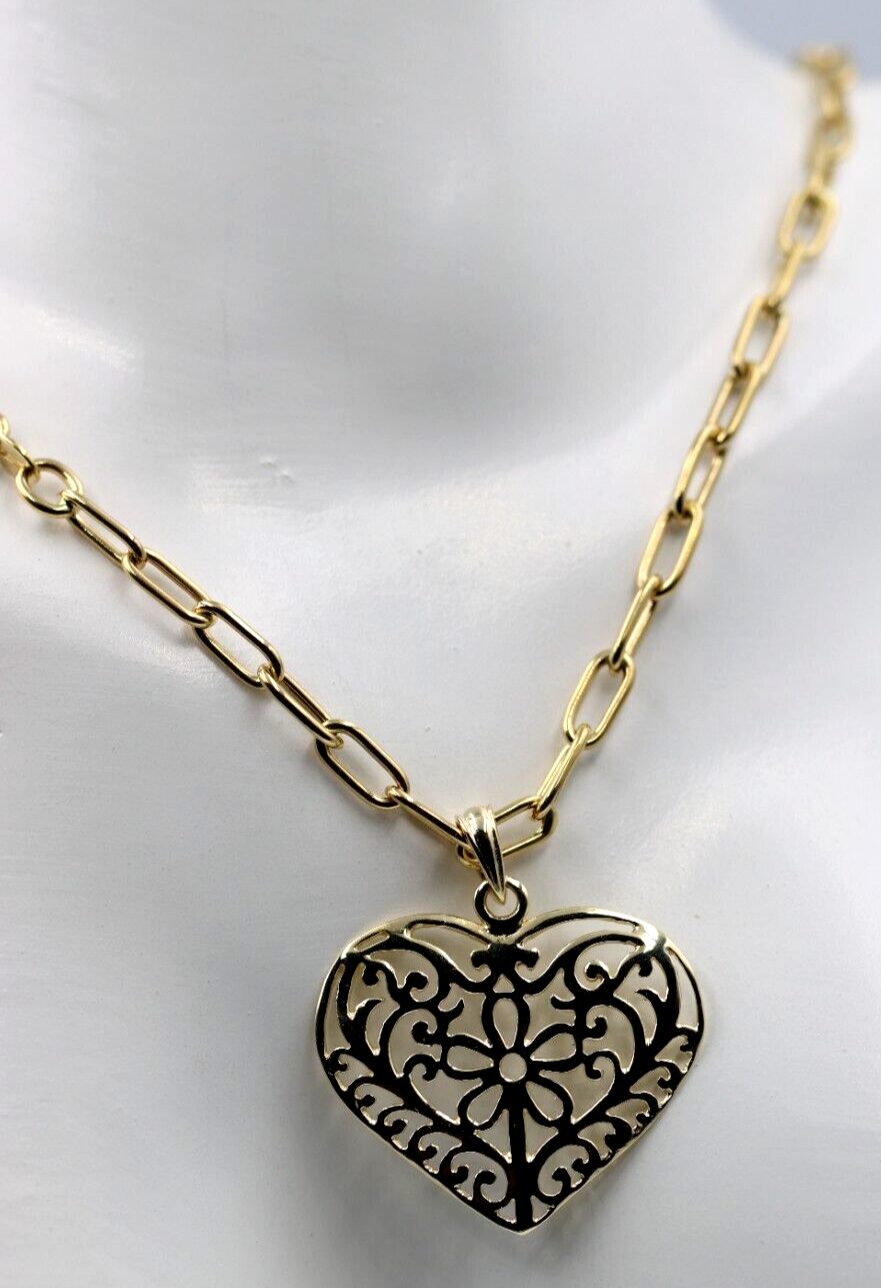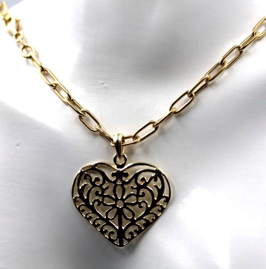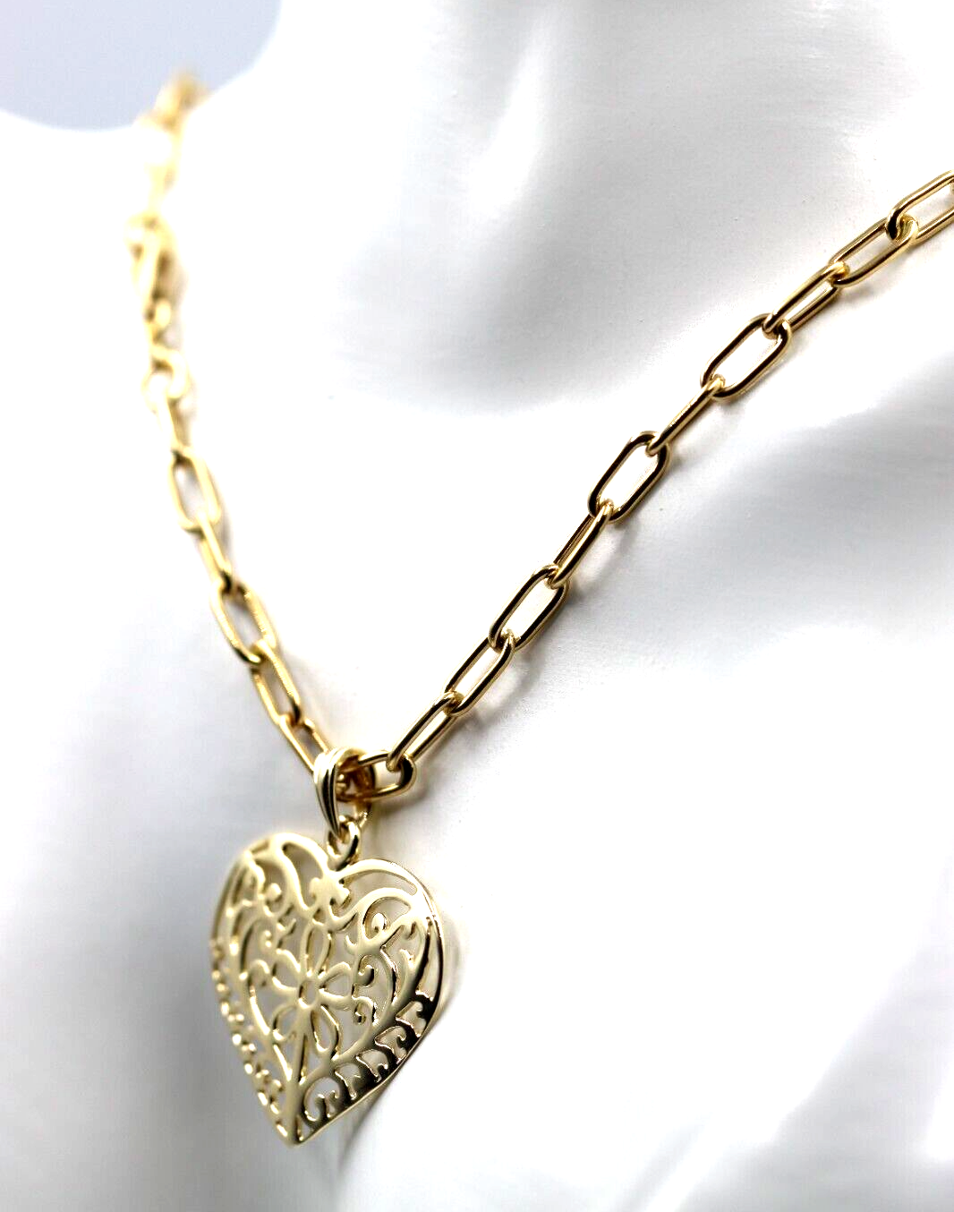 Genuine 9ct Yellow Gold Handmade Paper Clip 45cm Chain + Heart Pendant-Free Post