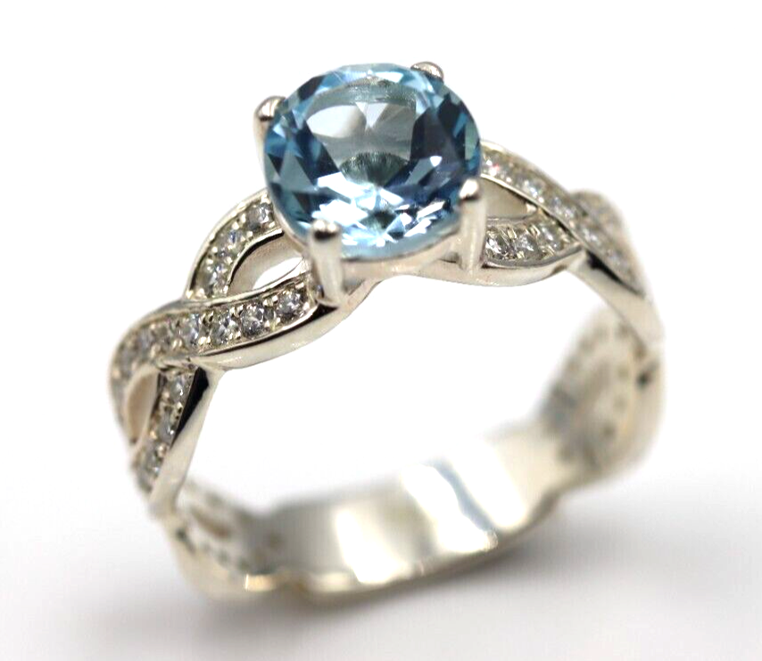 6mm size band Set with genuine Blue Topaz 7mm (round) Also set with cubic zirconia around the ring