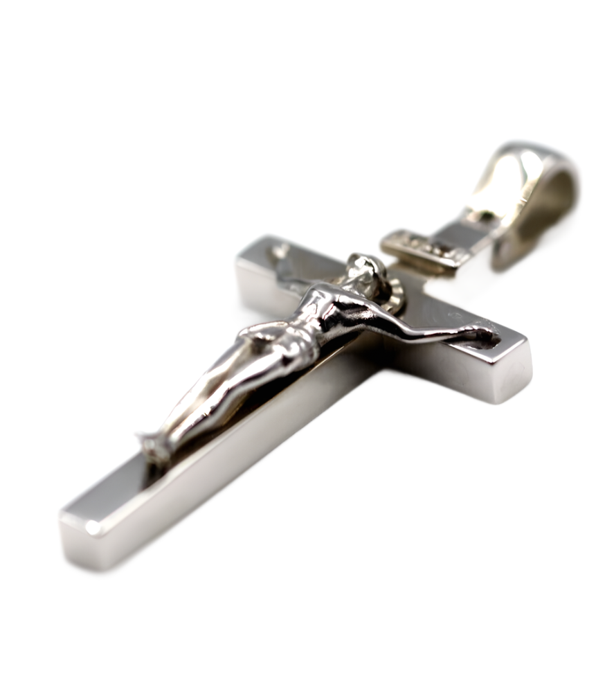 Cross is solid gold all the way through 4cm x 2.4cm (size of cross) 6mm bale Thickness of cross 4mm Thickness of cross and crucifix 6.6mm |