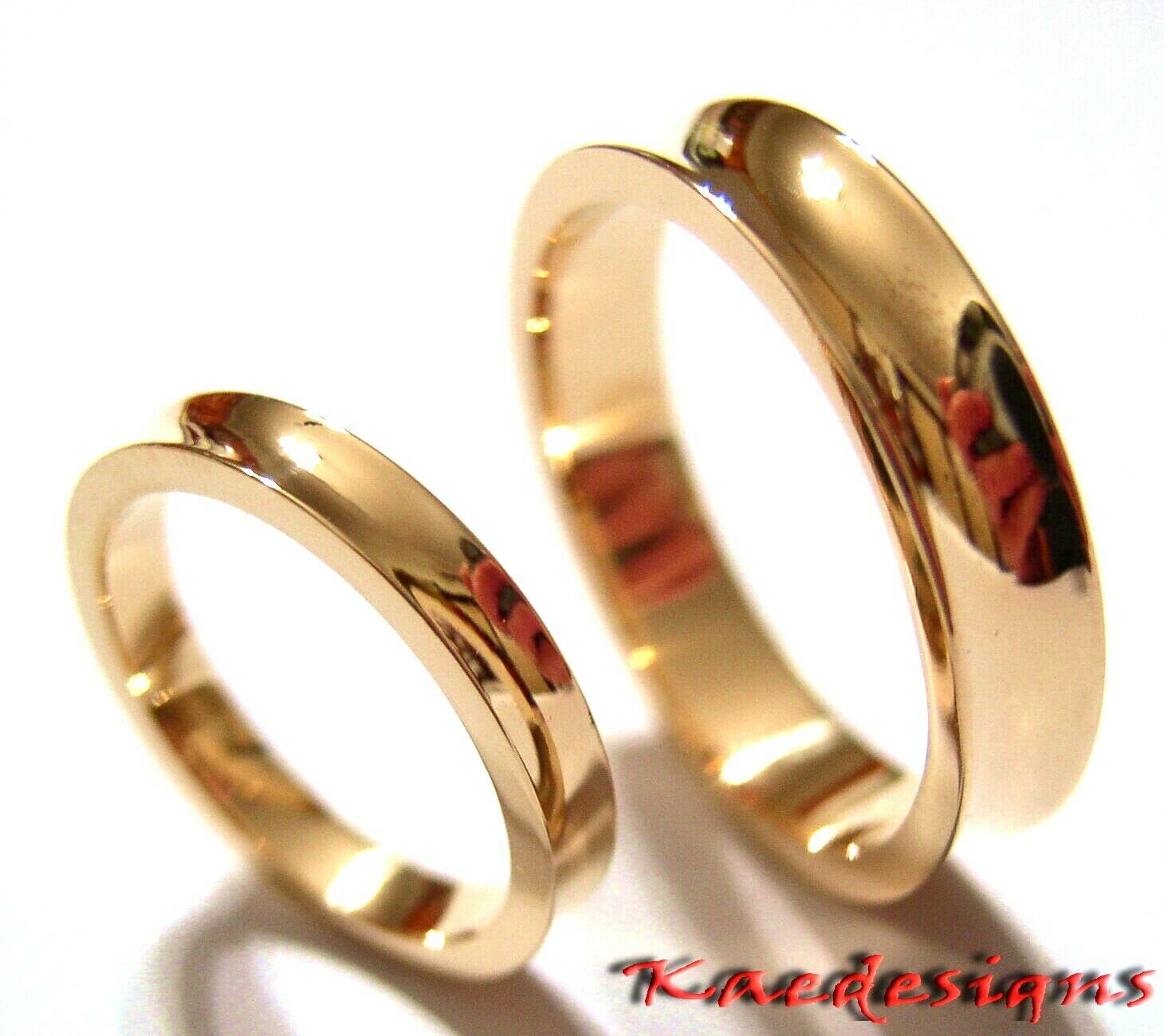 Genuine 2 Rings X Solid 18ct 18k Yellow, Rose or White Gold Concave Wedding Bands Rings