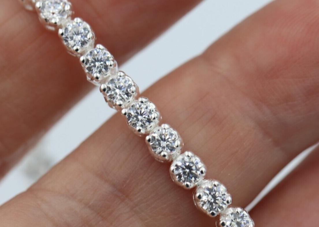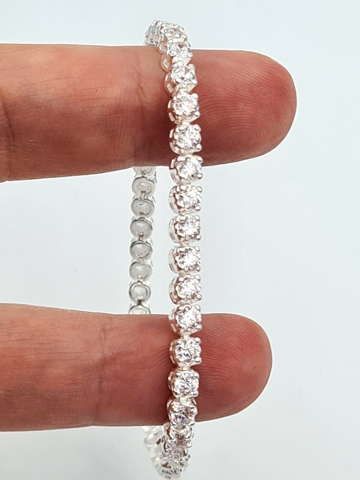 Genuine 4mm CZ Prong Round Cubic Zirconia Set Tennis Bracelet Sterling Silver 18cm