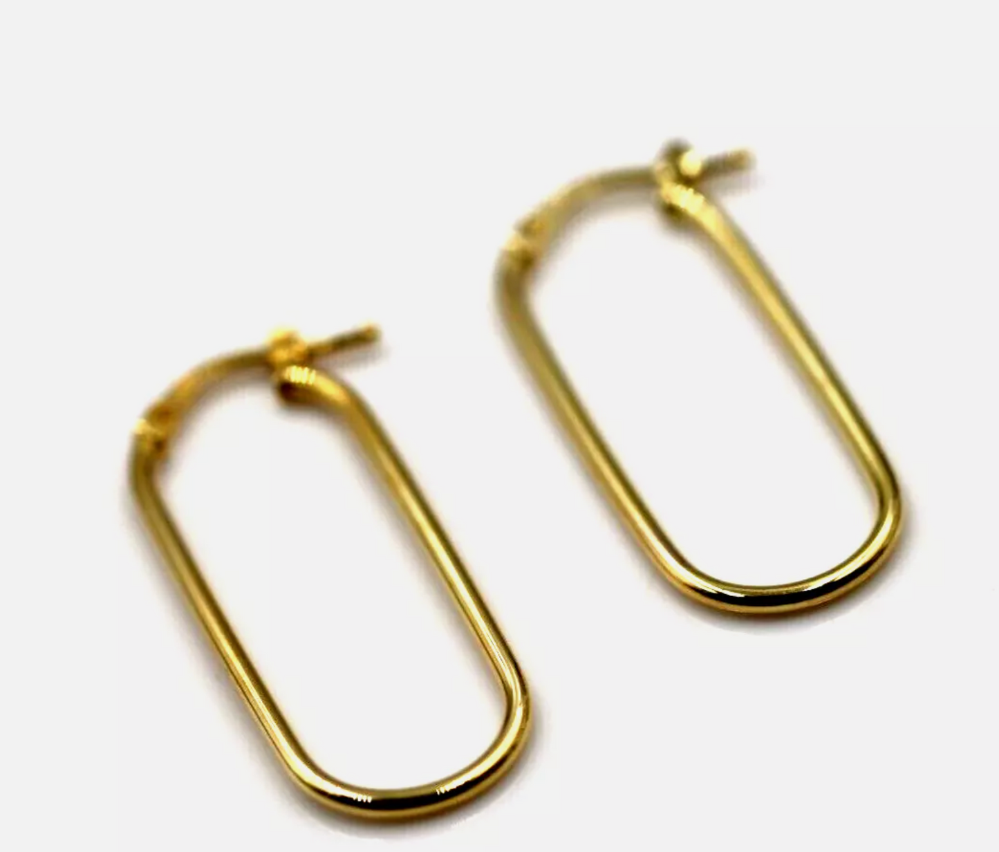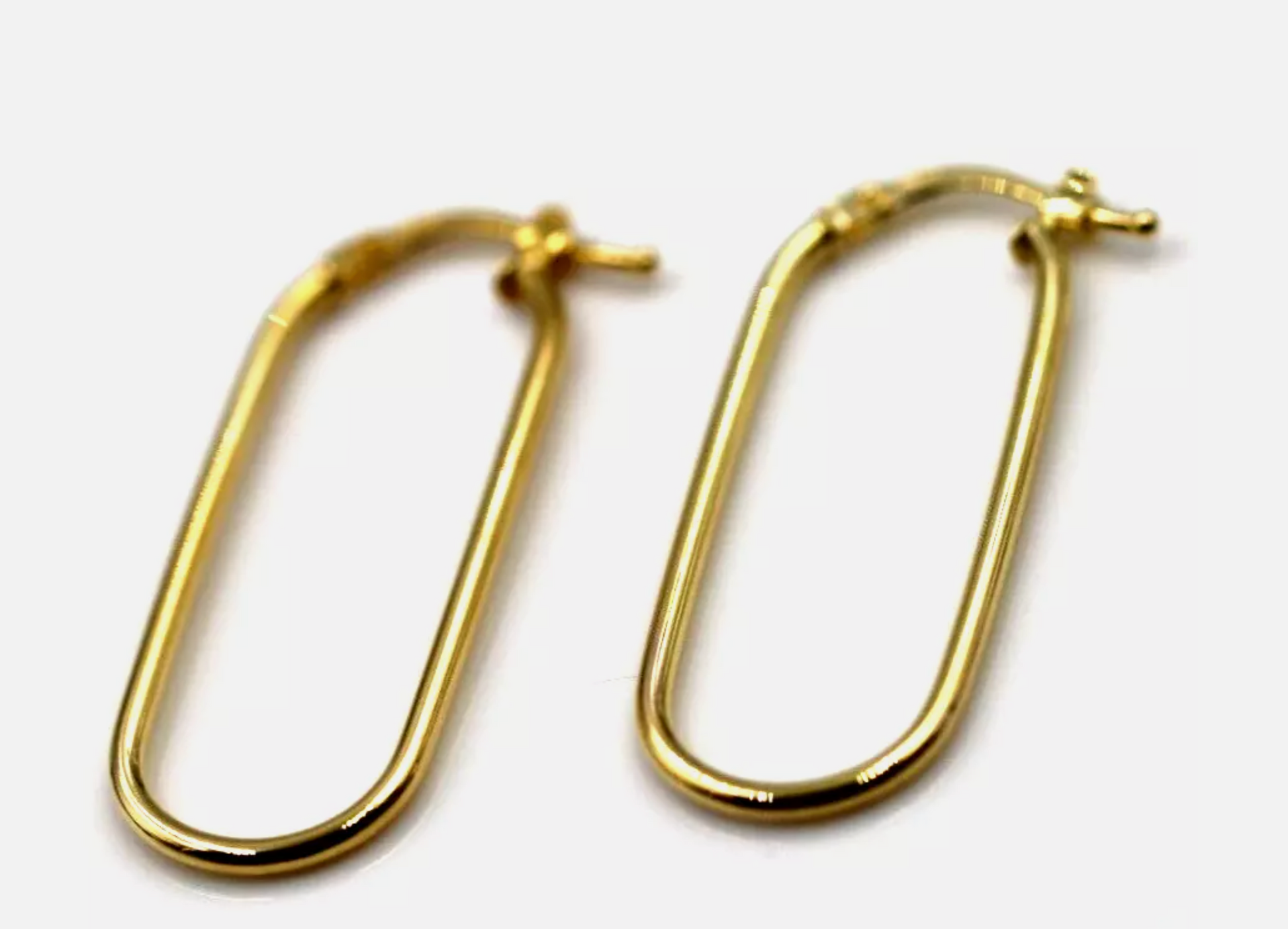 Genuine 9ct 9K 375 Yellow Gold Fine Long Oval Hoops Earrings