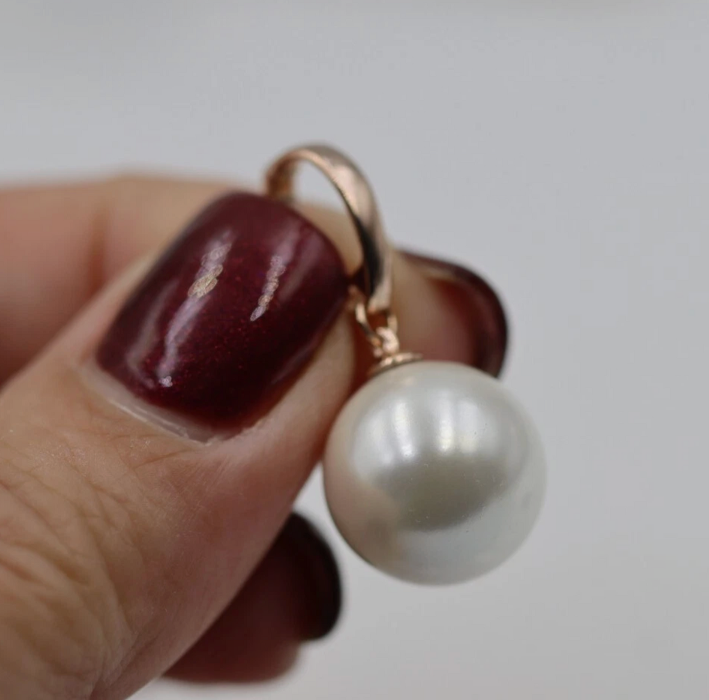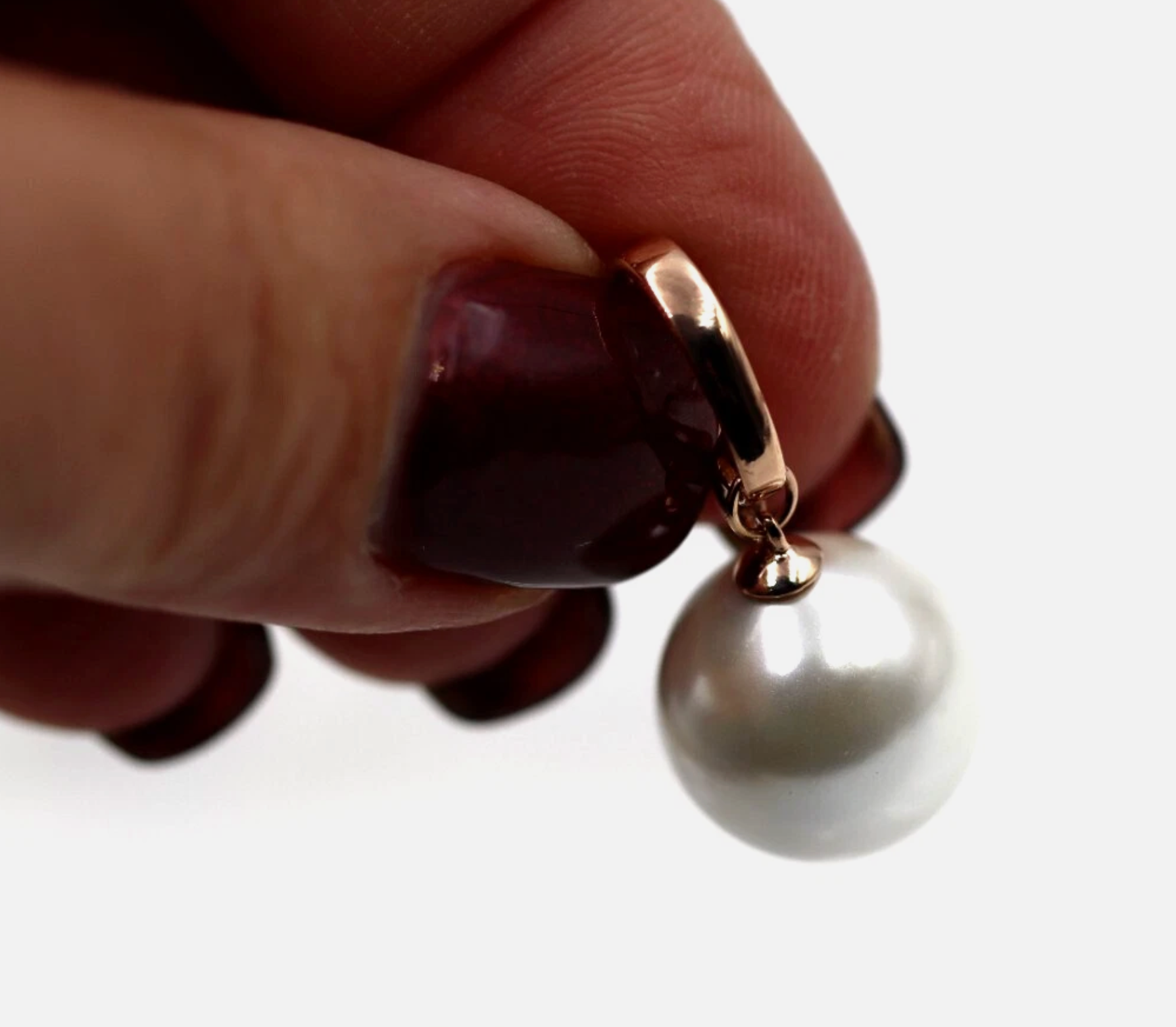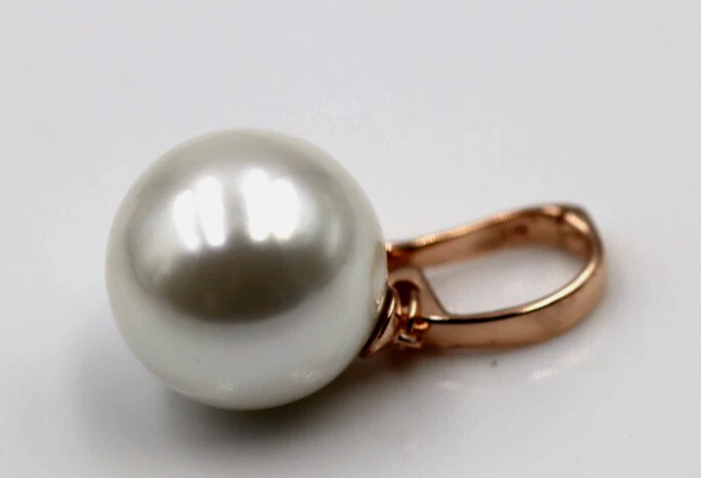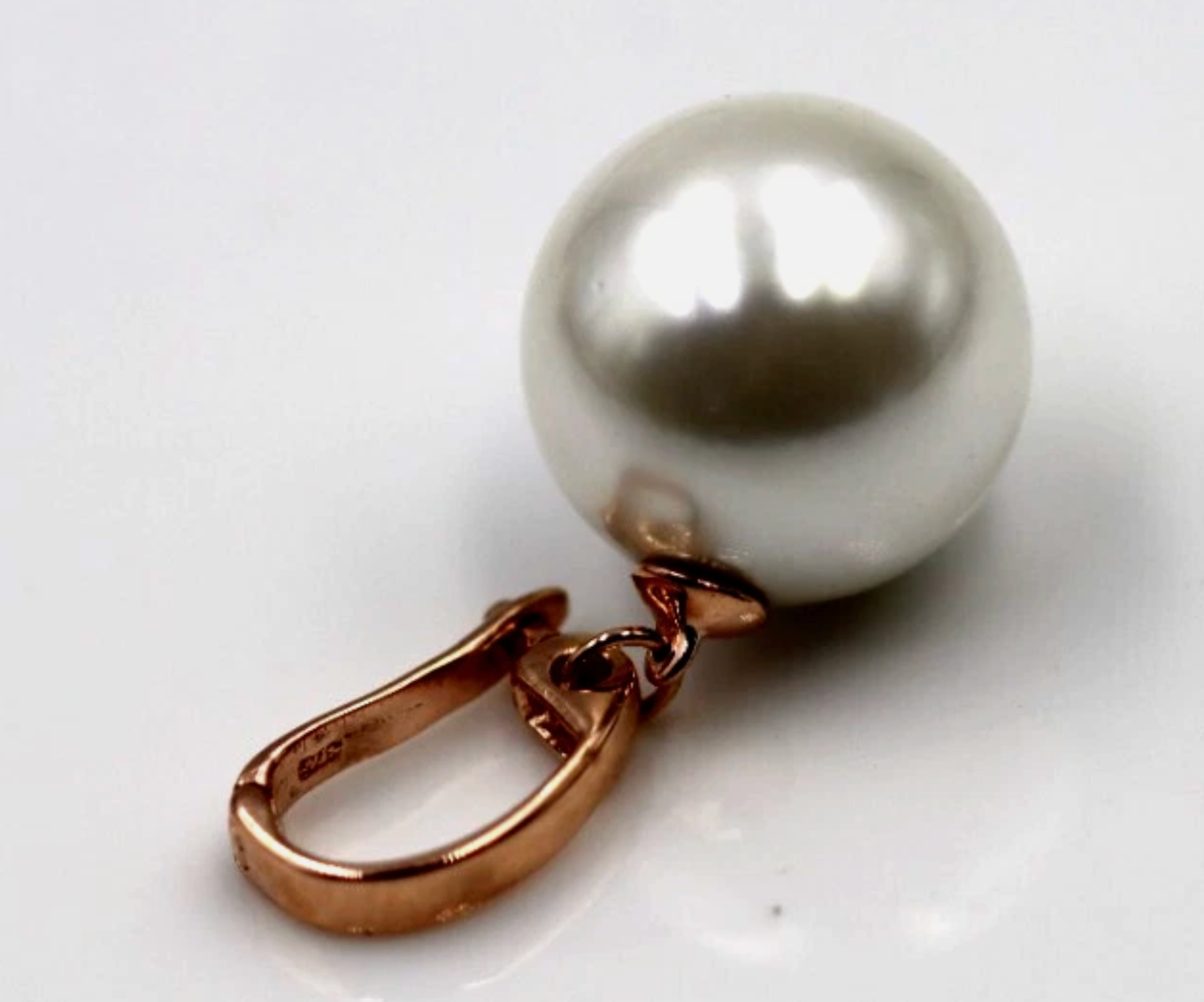 Genuine 9ct 9k 375 Yellow, Rose or White Gold 375 14mm Shell White Pearl Ball Enhancer Pendant