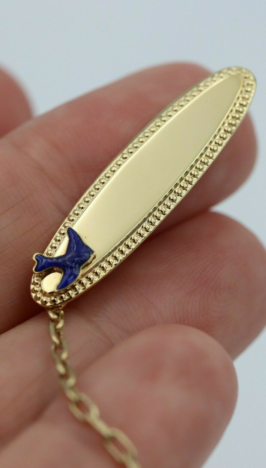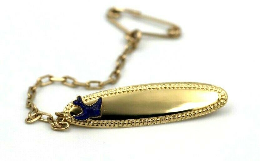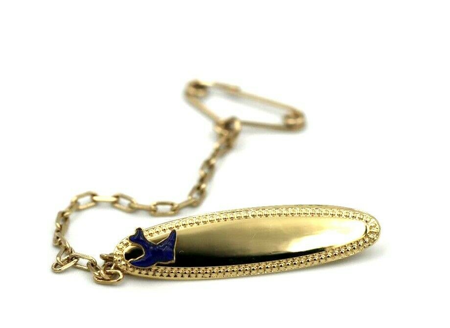 Genuine 9ct 9k Yellow Gold Oval Bluebird Baby Brooch * Free laser engraving