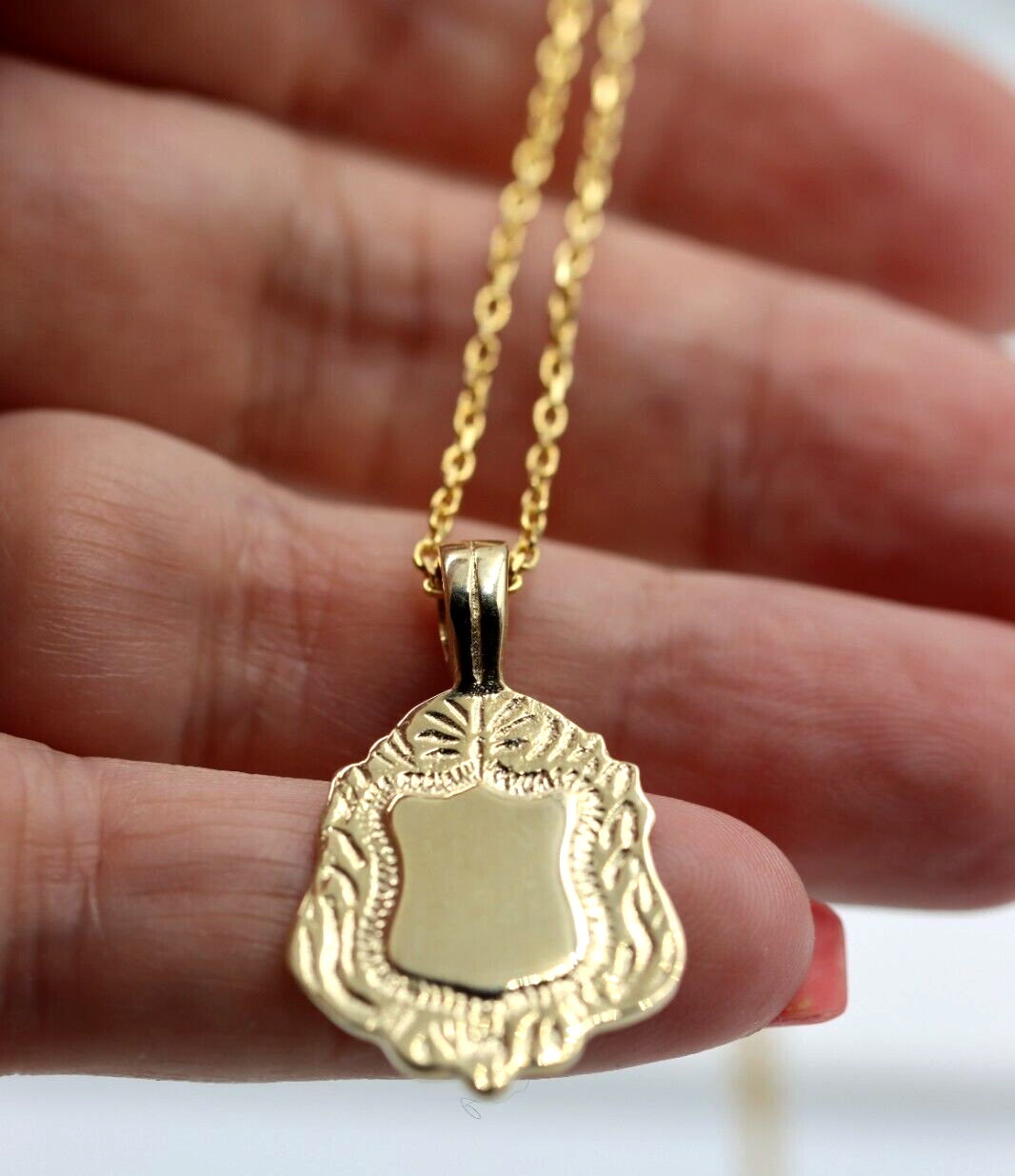 Genuine 9ct Yellow Gold 375 Cable Chain Necklace 50cm + Shield Pendant