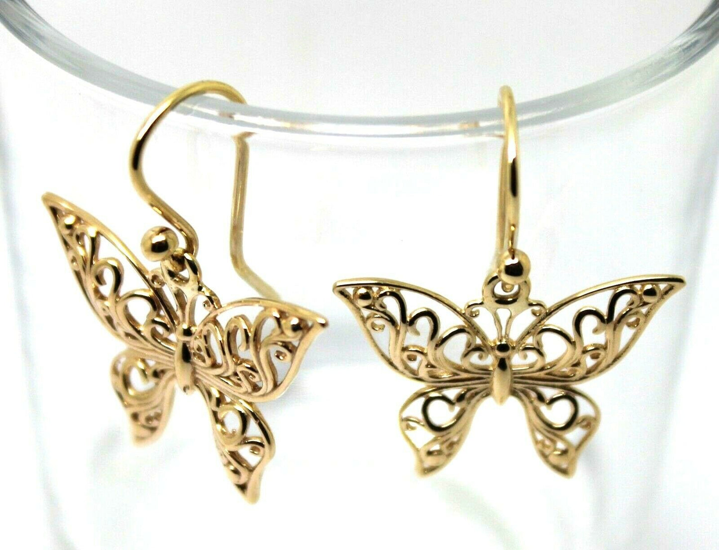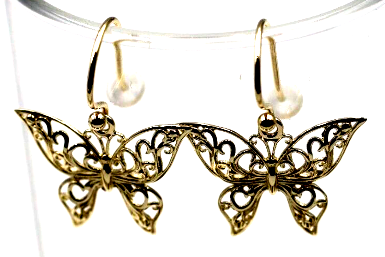 Genuine 9ct 9k 375 Yellow, Rose or White Gold Filigree Butterfly Drop Open Hook Earrings