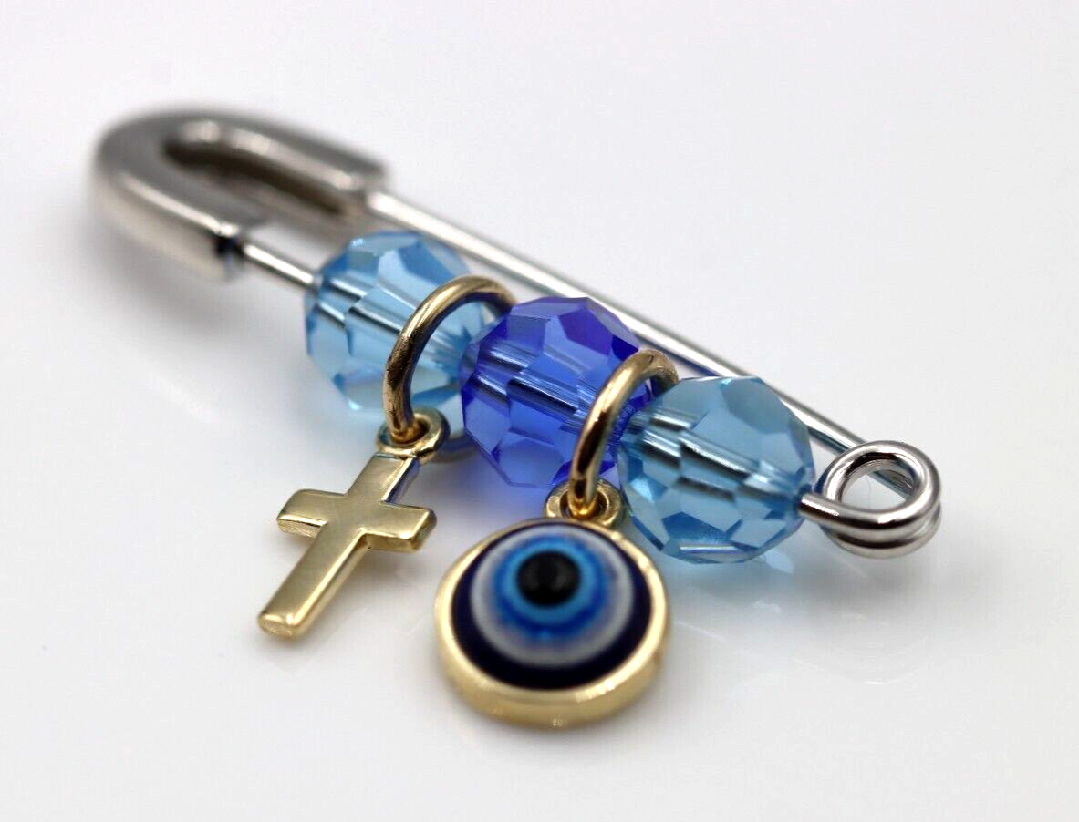 Genuine 9ct Yellow Gold + Sterling Silver Baby Mati & Cross Brooch Pin