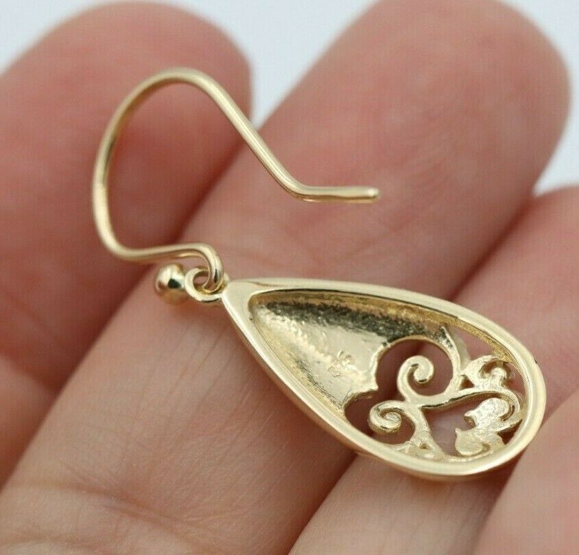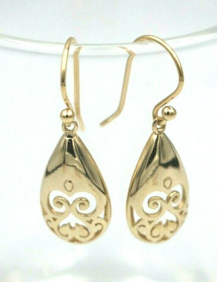 Genuine 9ct Yellow, Rose or White Gold Earrings Filigree Scroll Flower Teardrop Hook Earrings