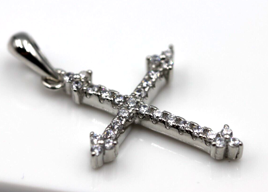 Genuine Cubic Zirconia 925 Sterling Silver Cross Pendant