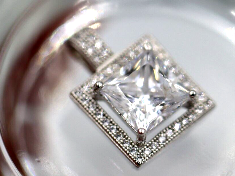 Genuine Cubic Zirconia 925 Sterling Silver Princess Cut Square Pendant Free Post