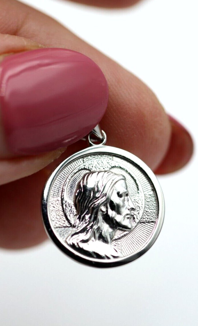 Sterling Silver 925 Round Jesus Pendant or Charm