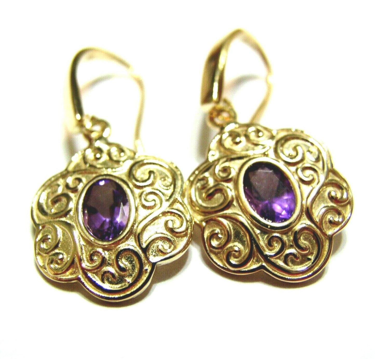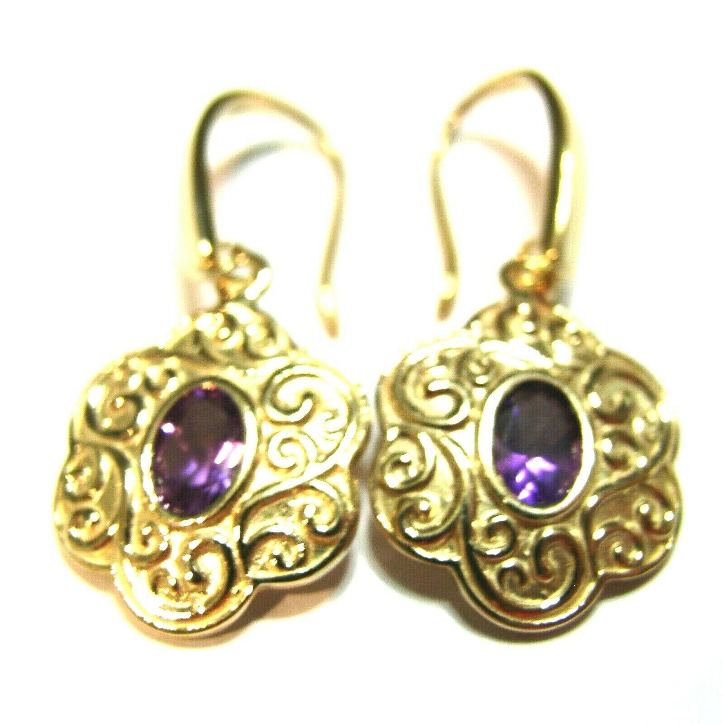 Genuine Heavy 9ct 9K Solid Yellow, Rose or White Gold Antique Amethyst Filigree Drop Earrings