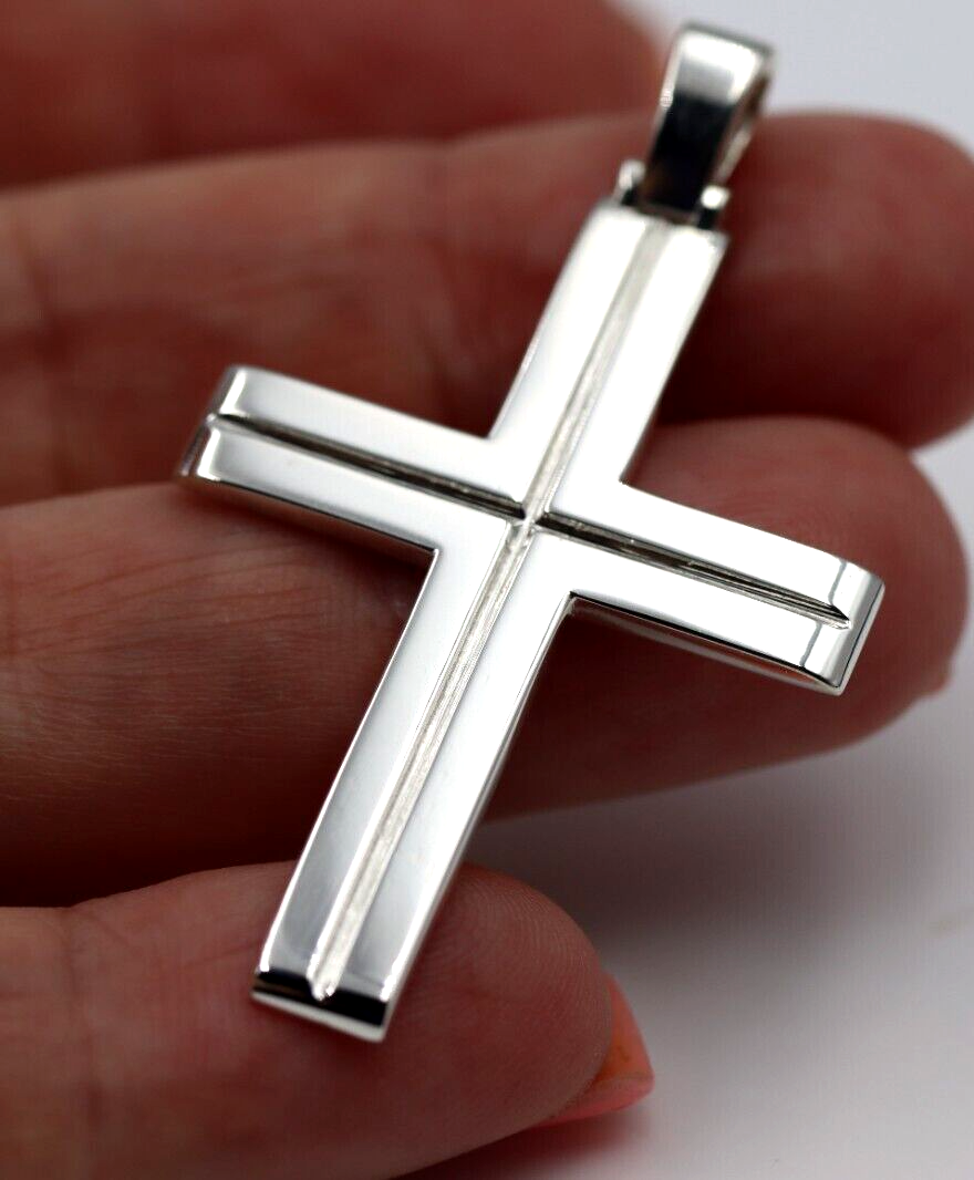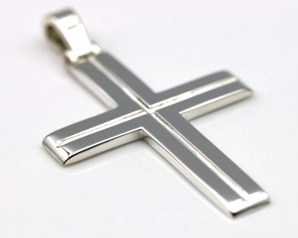 Genuine Large Ridged Sterling Silver 925 Cross Pendant
