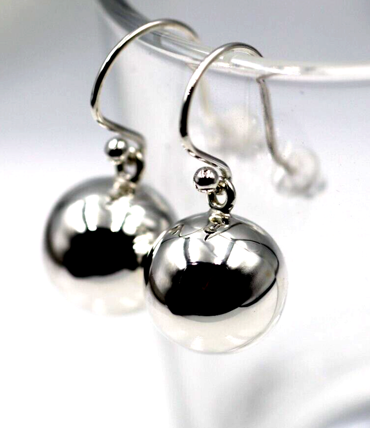 Genuine Large Sterling Silver 925 14mm Ball Drop Earrings