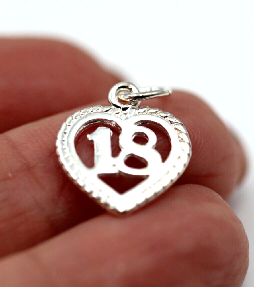 Genuine New Sterling Silver 925 18th Heart Pendant or Charm