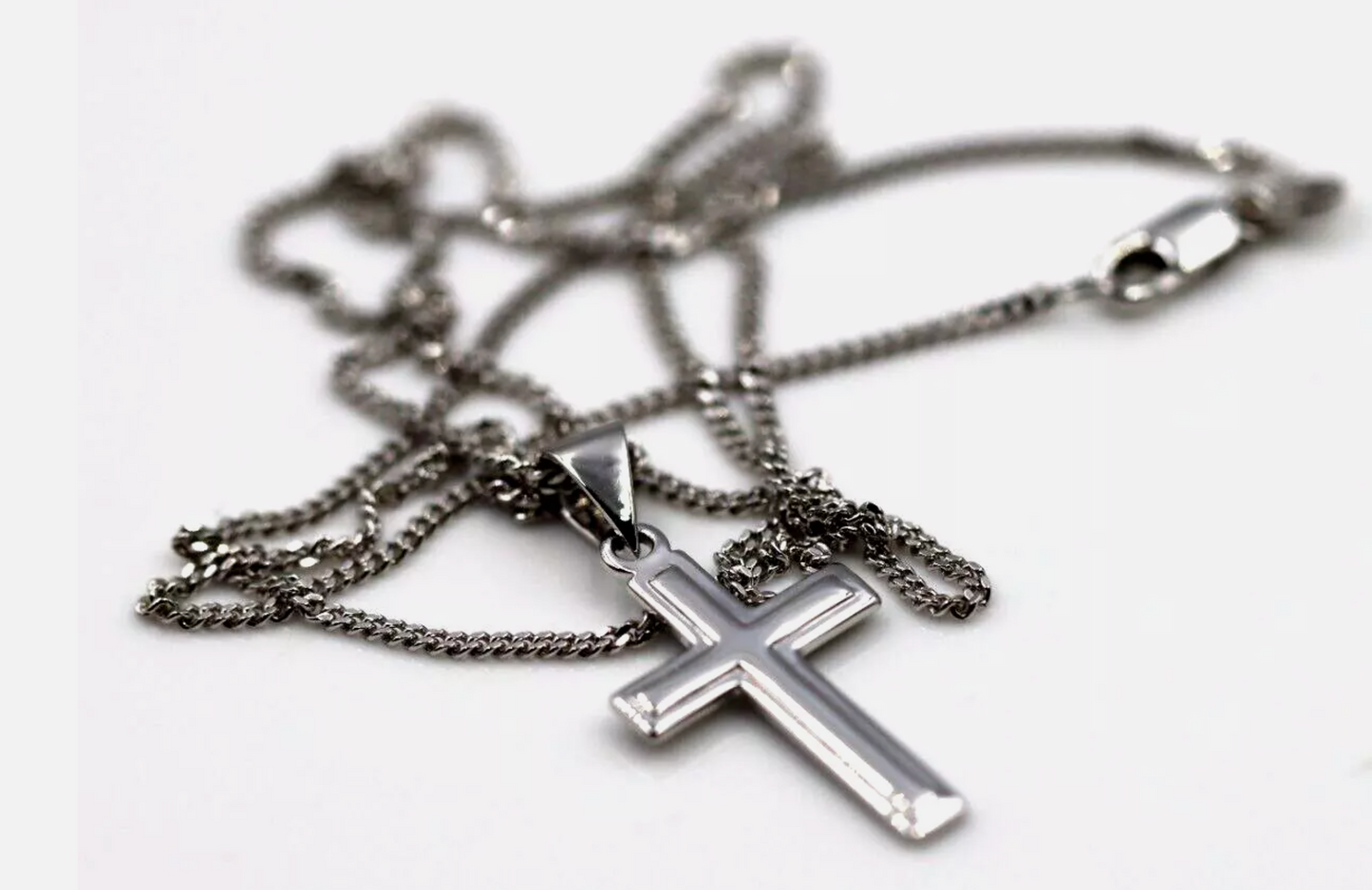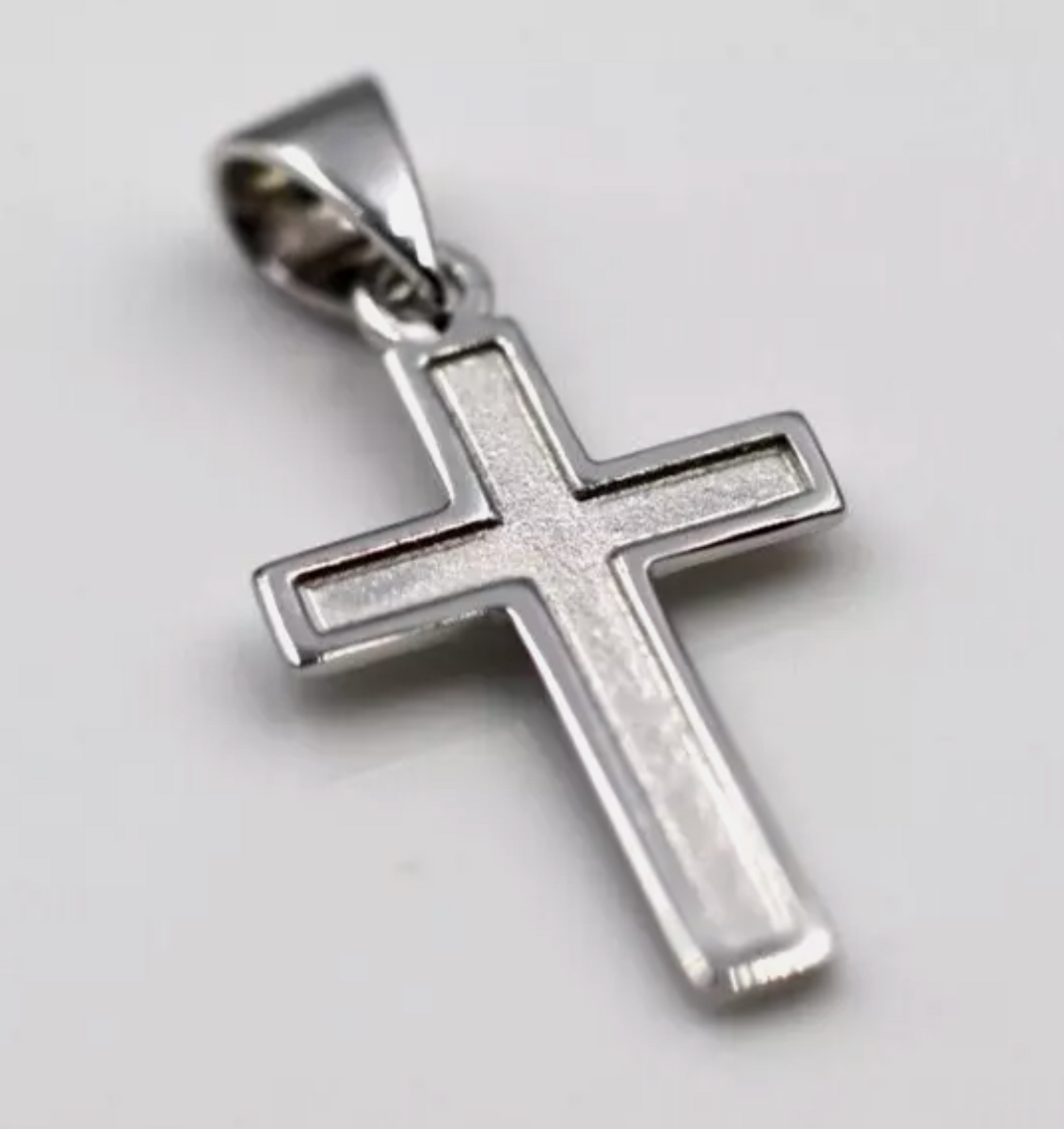 Genuine Small New 9ct 9K White Gold Plain Cross Pendant + Necklace Chain 50cm