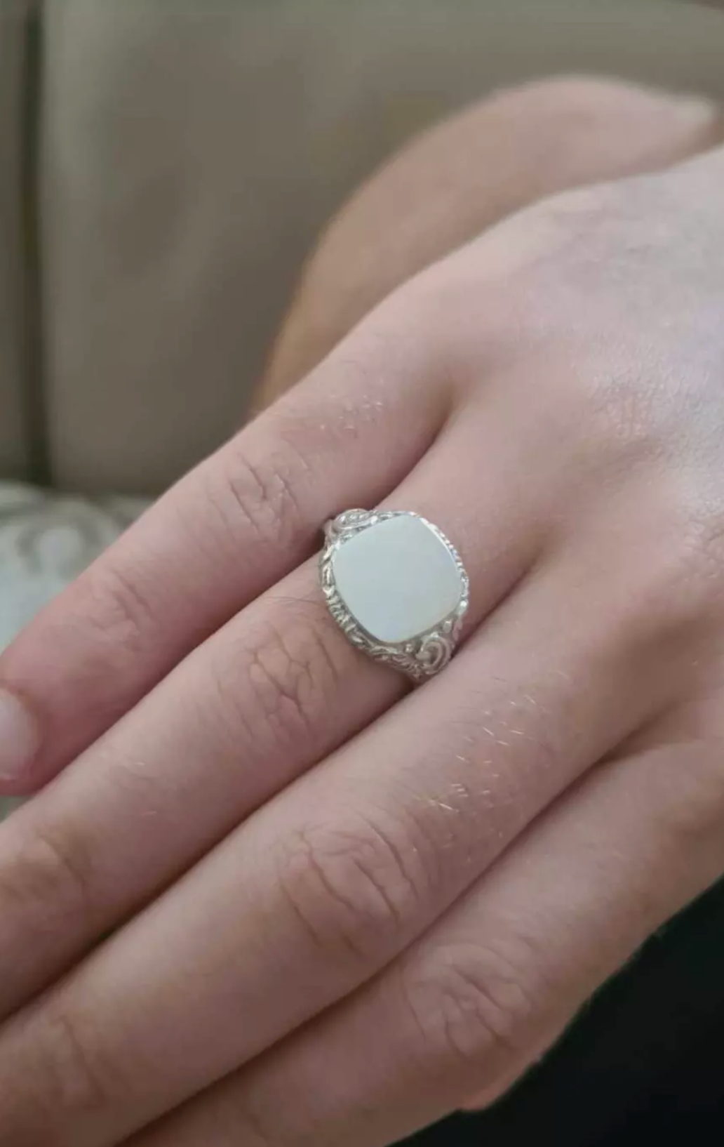 Genuine Solid Sterling Silver Square Engraved Signet Ring - Choose your size