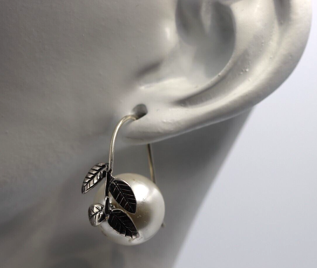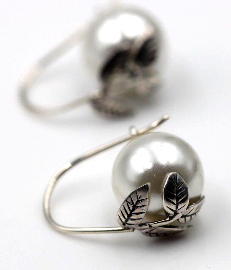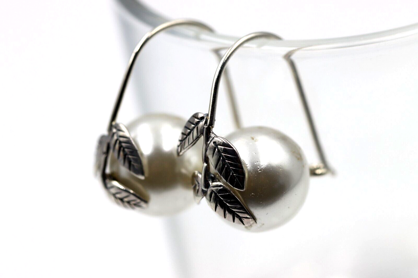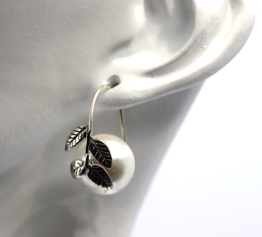 Genuine Sterling Silver 12mm Freshwater Leaf Pearl with Hook Earrings
